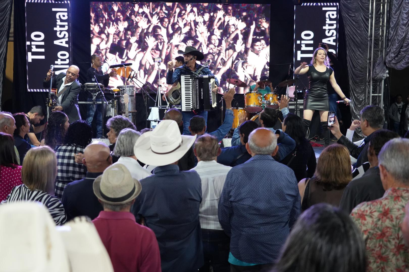 Um animado show com o Trio Alto Astral, de Uberlândia-MG, marcou a volta dos encontros festivos do Núcleo de Convivência da Terceira Idade João Fayad. Depois de dois anos e meio sem a realização dos bailes por causa da pandemia, o tradicional calor humano ressurgiu para cerca de 600 pessoas que estiveram, na fria noite de sexta-feira (16), no antigo Clube da Mineração, local que passou a sediar o evento, onde também funciona a Secretaria Municipal de Esportes.