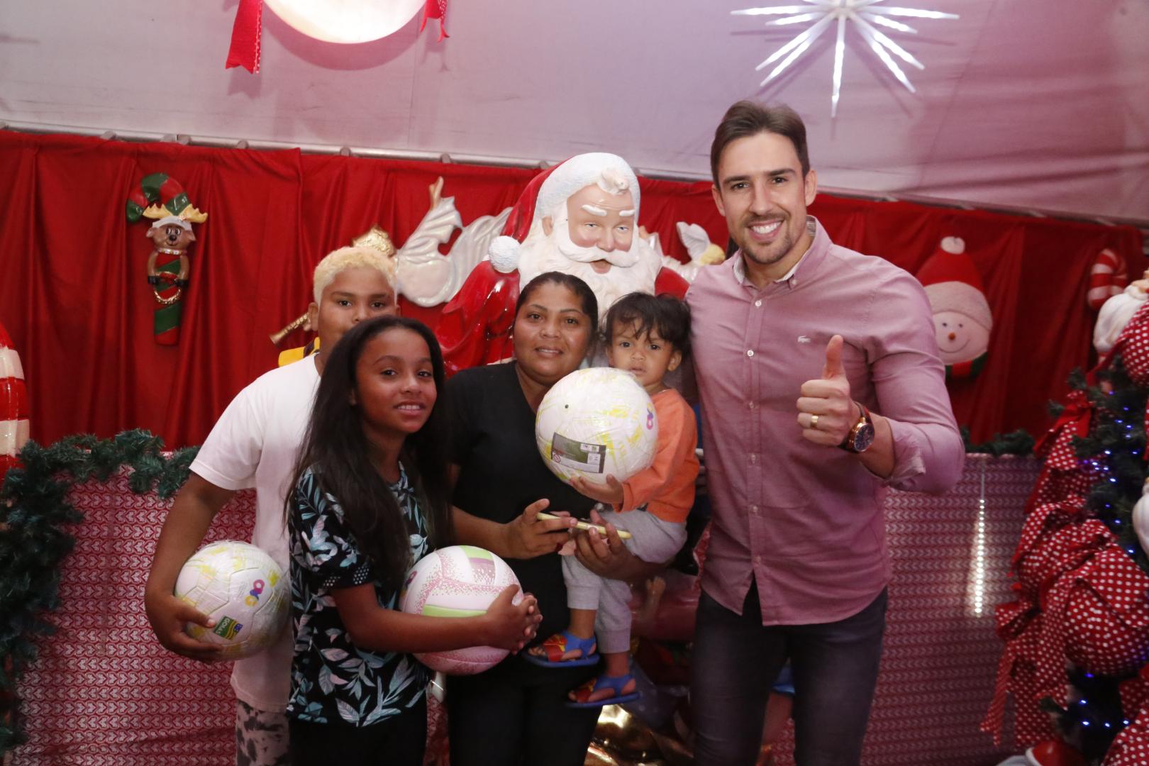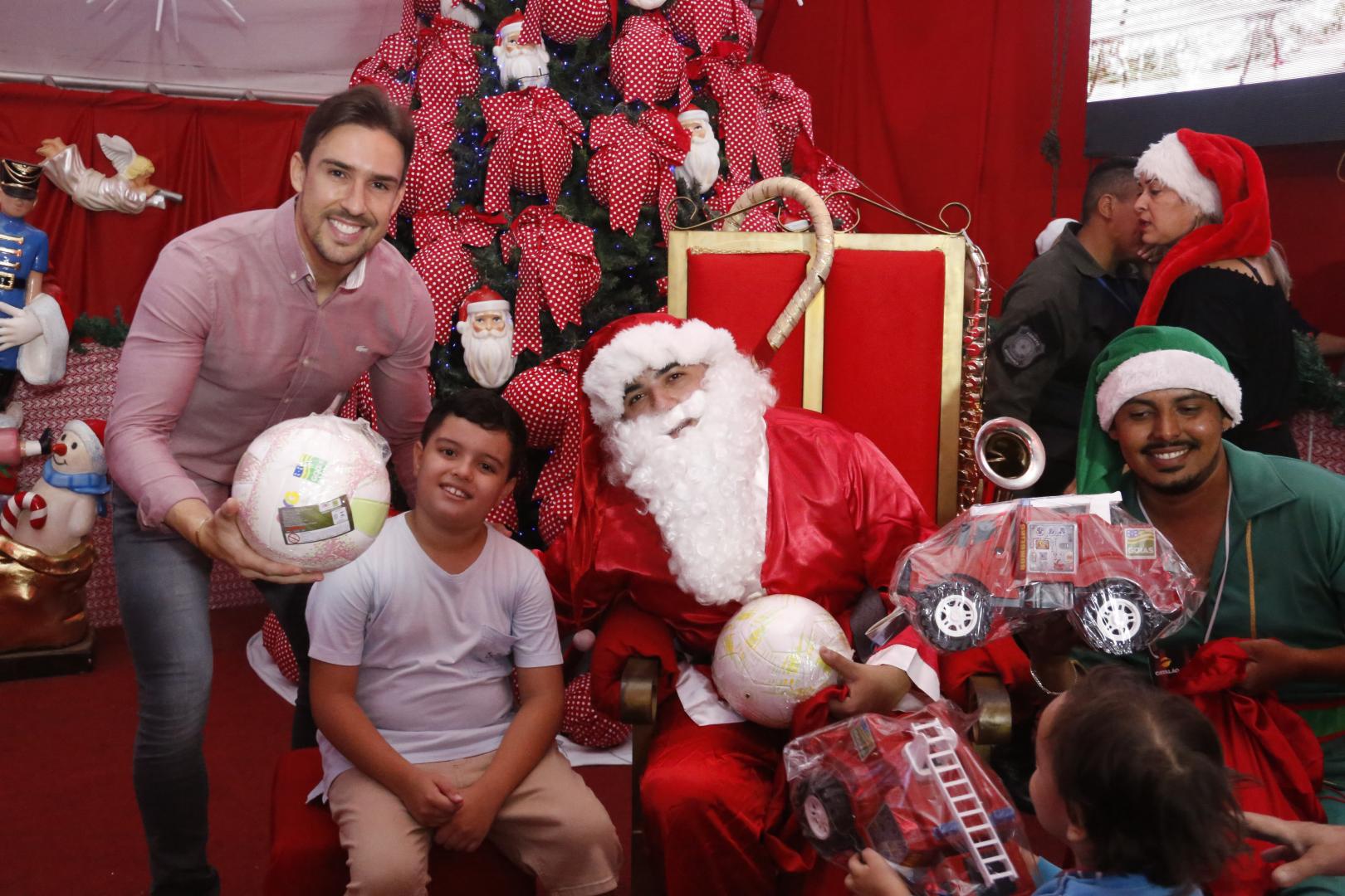Além da emocionante chegada bom velhinho, o que marcou a noite de ontem (19) e também fez a alegria da criançada foi a distribuição de brinquedos (fruto de uma parceria entre o Governo do Estado e a atual administração municipal). Milhares de crianças receberam bolas, carrinhos e bonecas. Muitas tiraram fotos e ainda receberam o abraço carinhoso do Papai Noel.