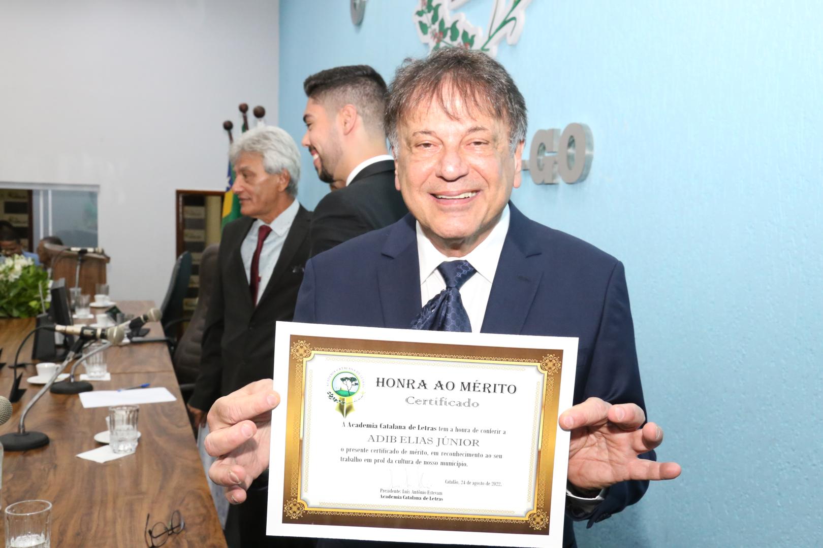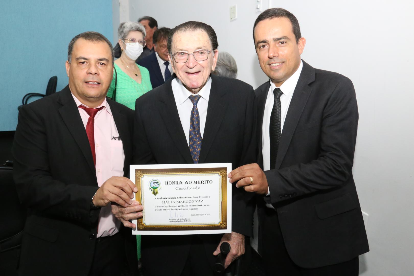 A cerimônia também homenageou duas personalidades que muito contribuíram com a cultura no município: o ex-prefeito de Catalão, Haley Margon Vaz e o atual prefeito, Adib Elias. Os dois foram agraciados com o Título de Honra ao Mérito Cultural e Sócio Benemérito da Academia Catalana de Letras.
