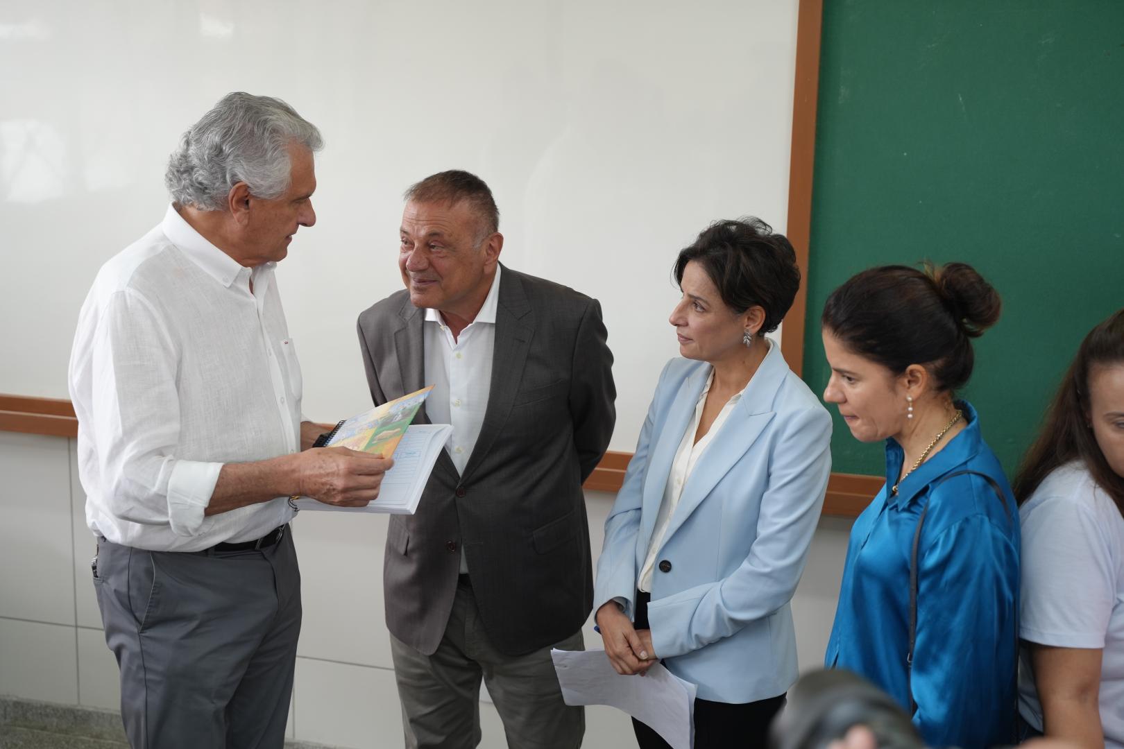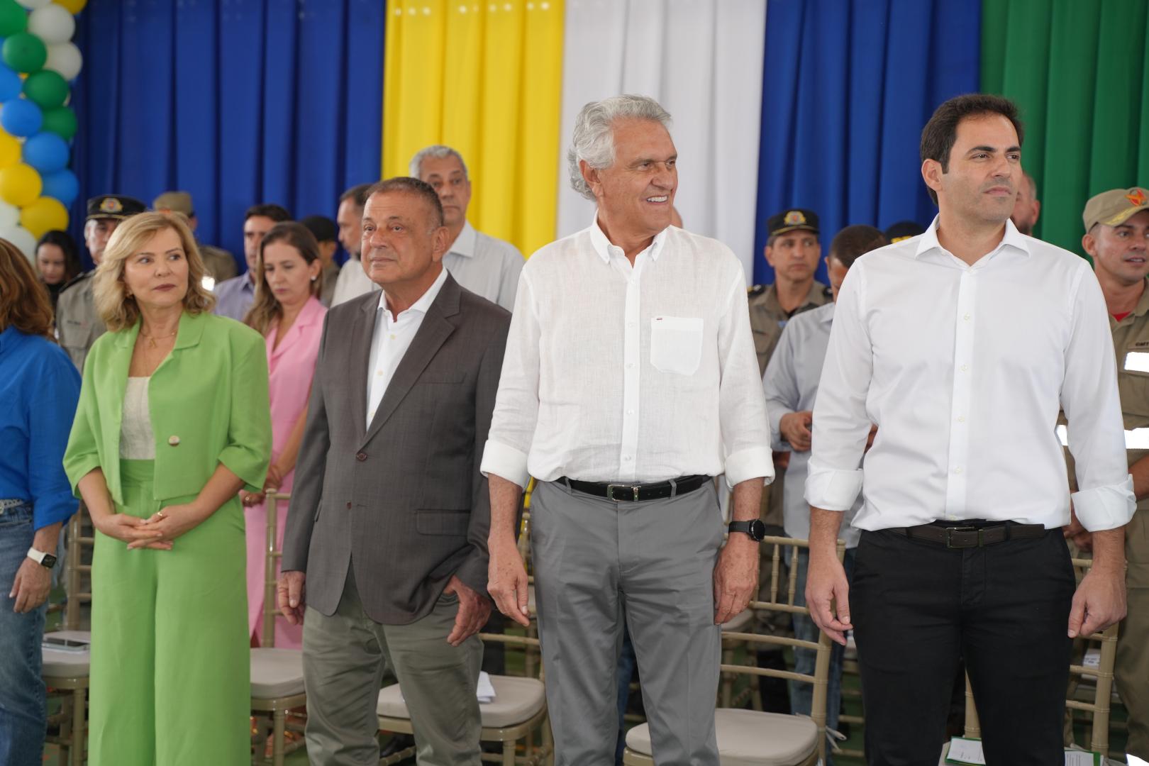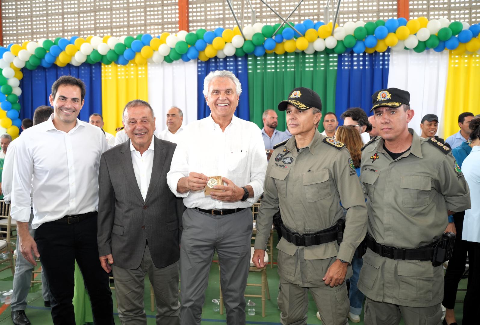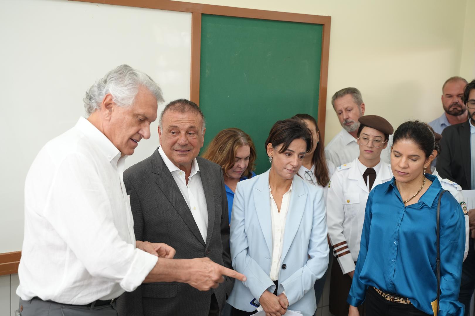 Às 9 da manhã, Caiado e Adib inauguraram o Colégio Estadual da Polícia Militar de Goiás (CEPMG) Iris Rezende Machado. A cerimônia foi realizada com participação da secretária Estadual de Educação, Fátima Gavioli, estudantes, professores, pais e autoridades políticas. As filhas de Iris Rezende, Ana Paula Rezende e Adriana Rezende também estiveram presentes representando a família do homenageado. Ana Paula e Adriana ficaram emocionadas com as homenagens ao ex-governador de Goiás.