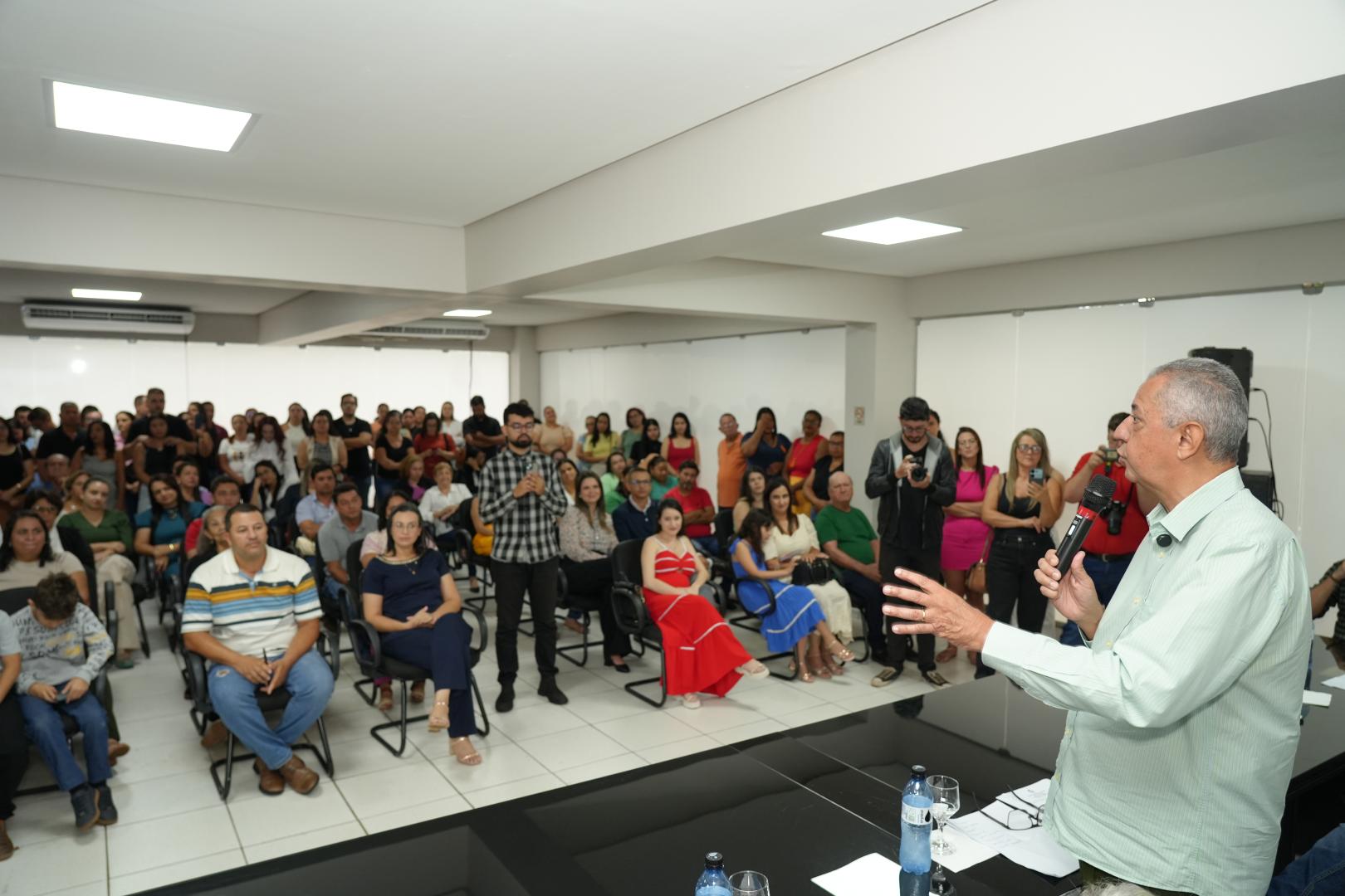 "Sejam bem-vindos ao nosso grupo de trabalho. Vocês farão parte do quadro de servidores de uma educação premiada", destacou Velomar. O prefeito se referiu a Catalão ter conquistado, no ano passado, o Selo Nacional Compromisso com a Alfabetização, divulgado pelo MEC. O Selo Ouro é um reconhecimento para as secretarias de educação que implementam boas práticas e adotam políticas, programas, estratégias e gestões públicas voltadas ao cumprimento das metas de alfabetização.