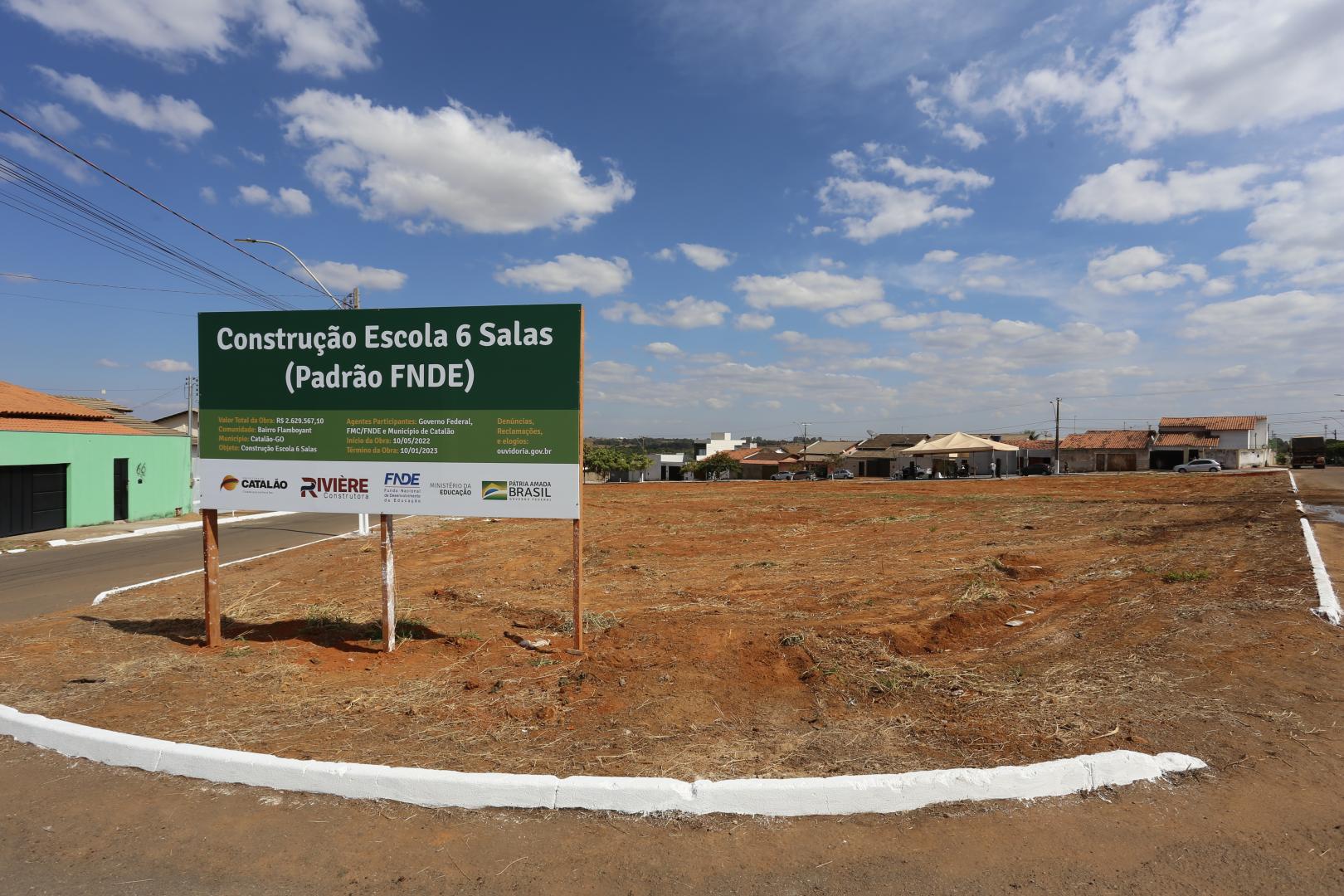 Começa mais uma obra na área da Educação sob o comando da Prefeitura de Catalão. Nesta quinta-feira (01), logo após a assinatura da ordem de serviço pelo prefeito Adib Elias, teve início a construção da nova Escola Municipal no bairro Flamboyant. A estrutura está sendo erguida Rua A, nº 81 do bairro.