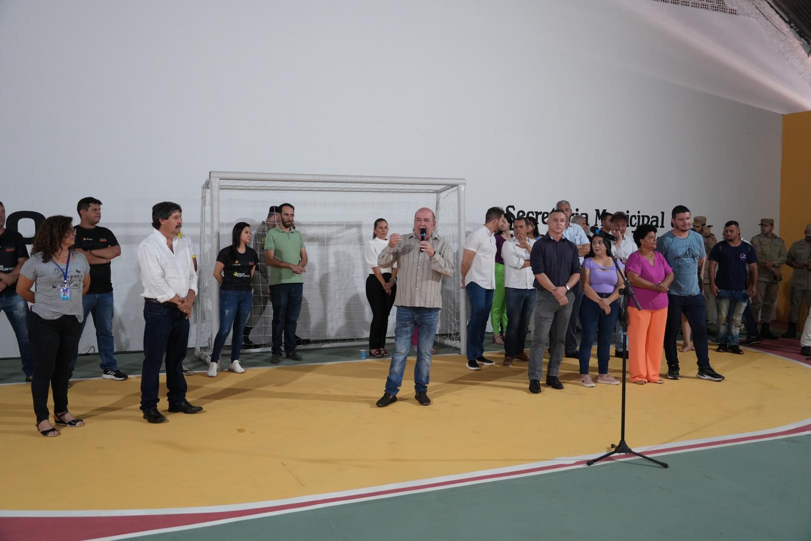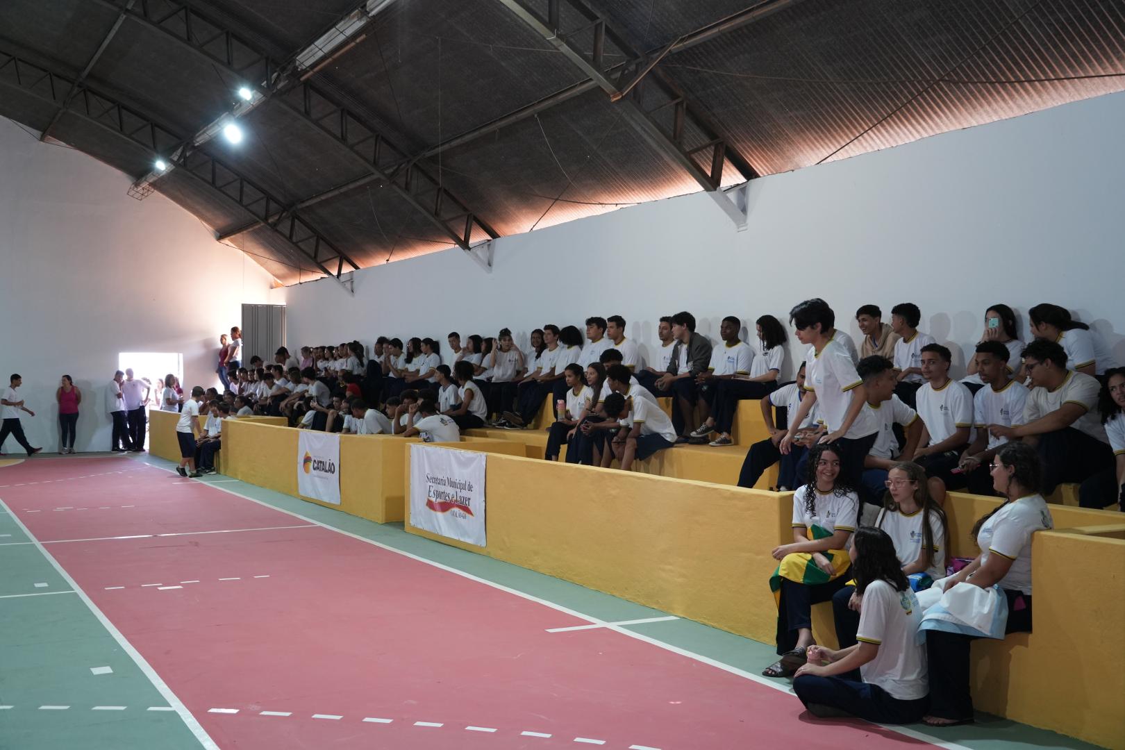 A entrega da reforma, nesta segunda-feira (25/09), lotou as arquibancadas do Ginásio de Esportes Lindomar Motta. Alunos da Escola Estadual Anice Cecílio Pedreiro, convidados e autoridades assistiram às apresentações do Projeto Mais Esportes, nas modalidades Ritmos e Condicionamento Postural.