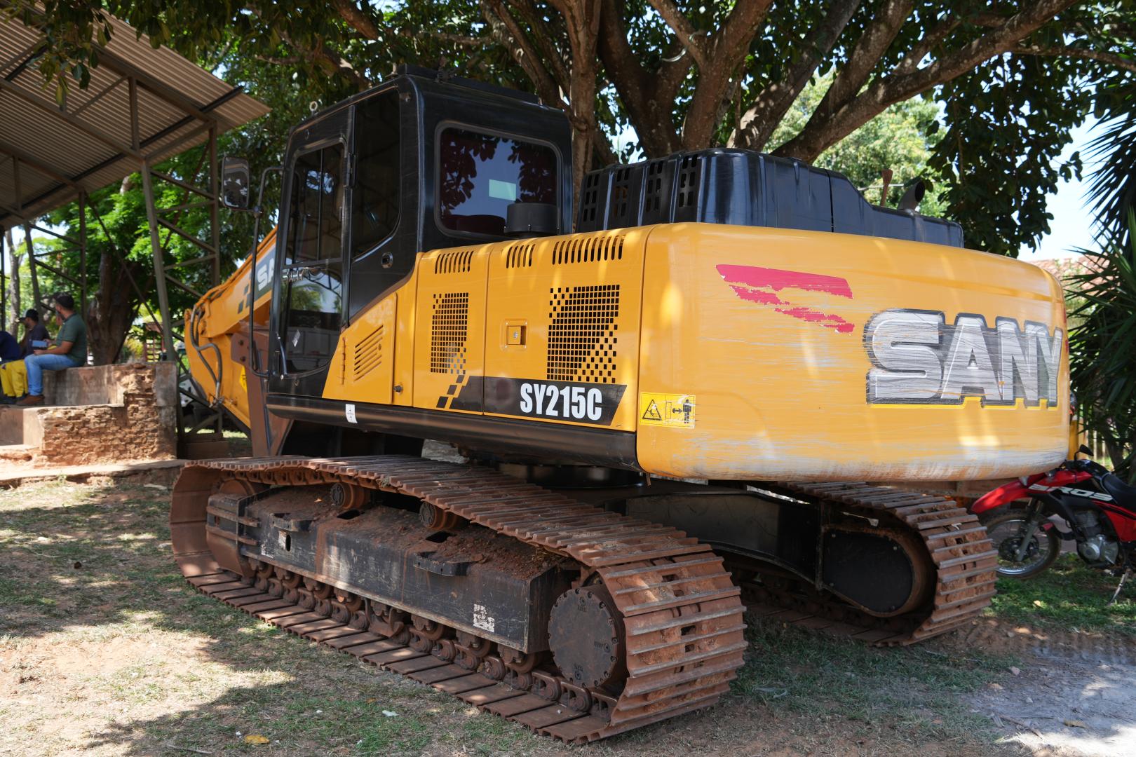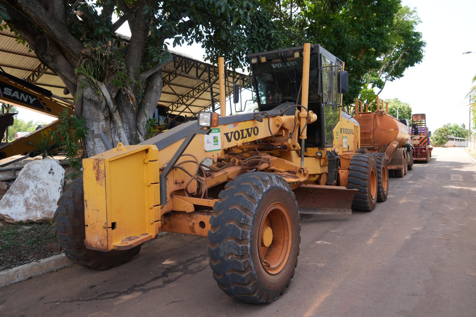 São quatro caminhões caçamba basculante truck, dois caminhões caçamba basculante toco, dois motoniveladoras, um cavalo mecânico de dois eixos com prancha de três eixos, um rolo compactador pé de carneiro, uma escavadeira hidráulica, um caminhão truck pipa, um trator de pneus tração com grade aradora e uma pá carregadeira com retroescavadeira.
