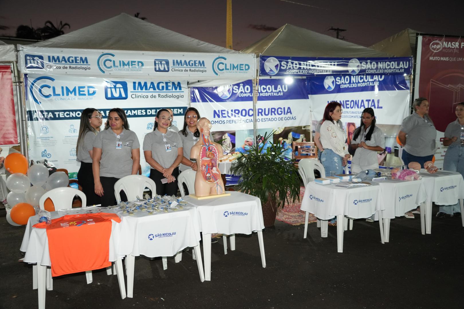 São 60 estandes montados no local, onde profissionais da área da saúde de diversos segmentos recebem, informam e oferecem serviços para o bem-estar dos moradores.