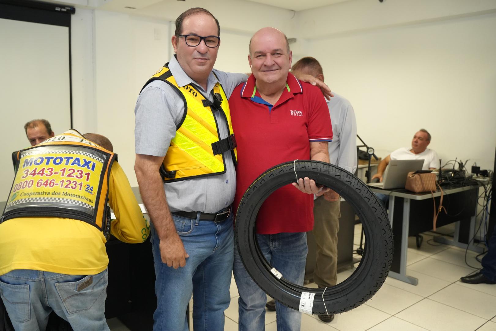 Os primeiros mototaxistas que ganharam o par de pneus levaram a moto para passar por vistoria na SMTC e comprovaram que estavam em dia com a documentação. Ao todo, serão beneficiados 350 mototaxistas da cidade.