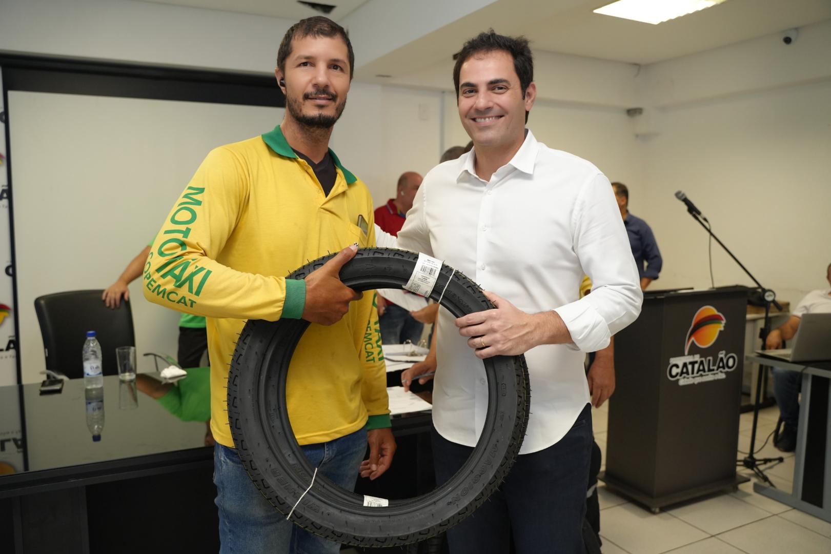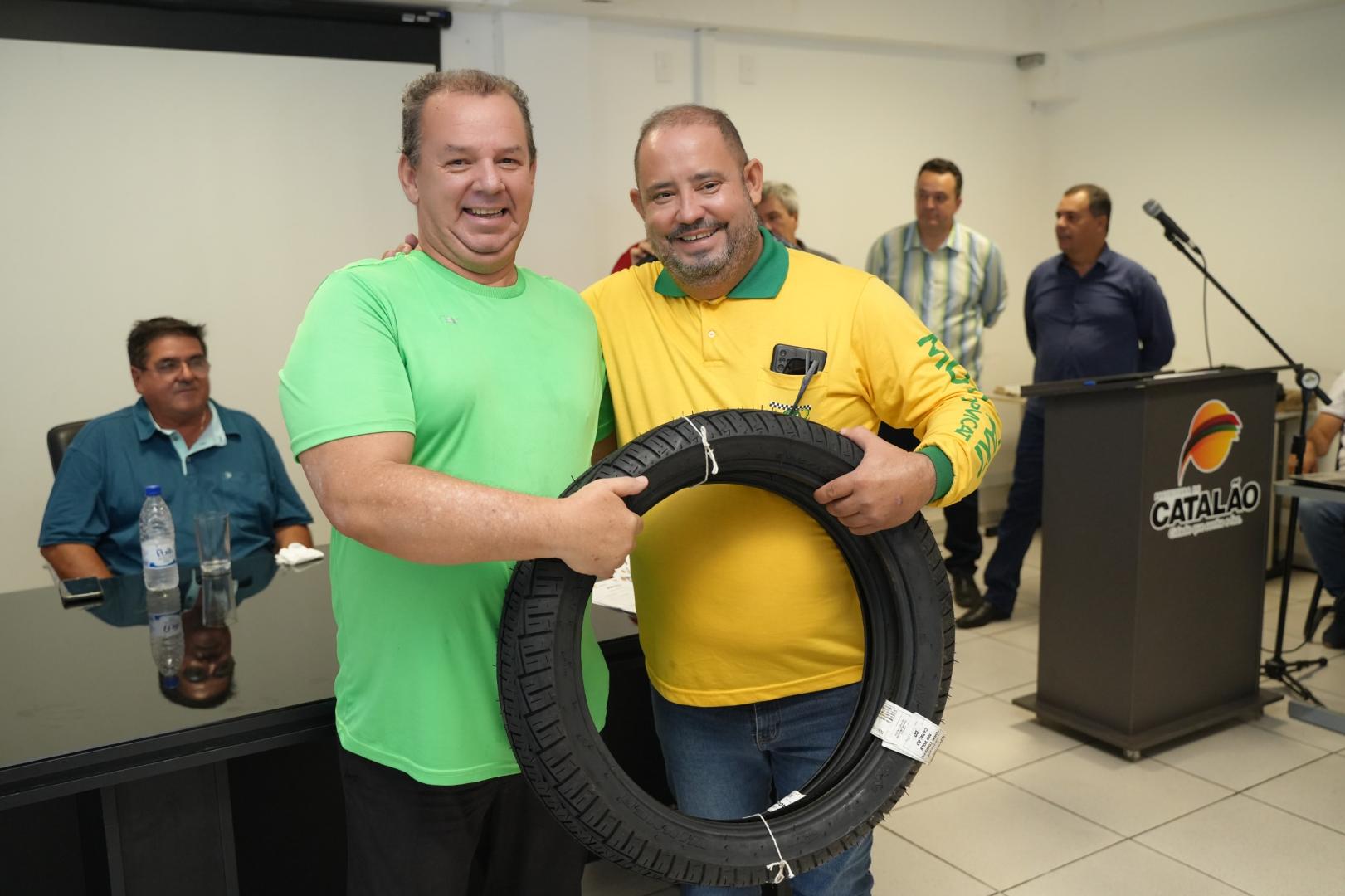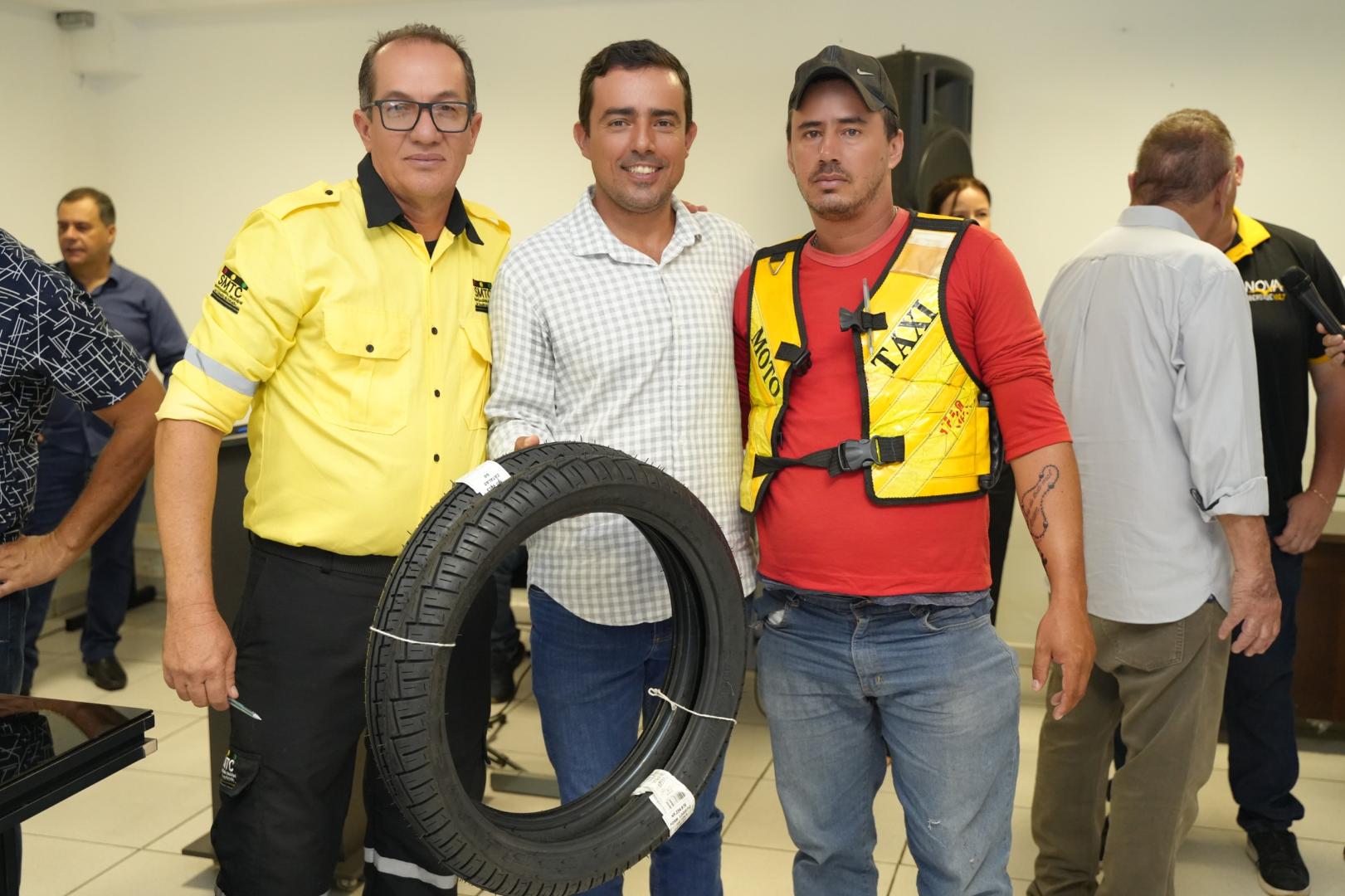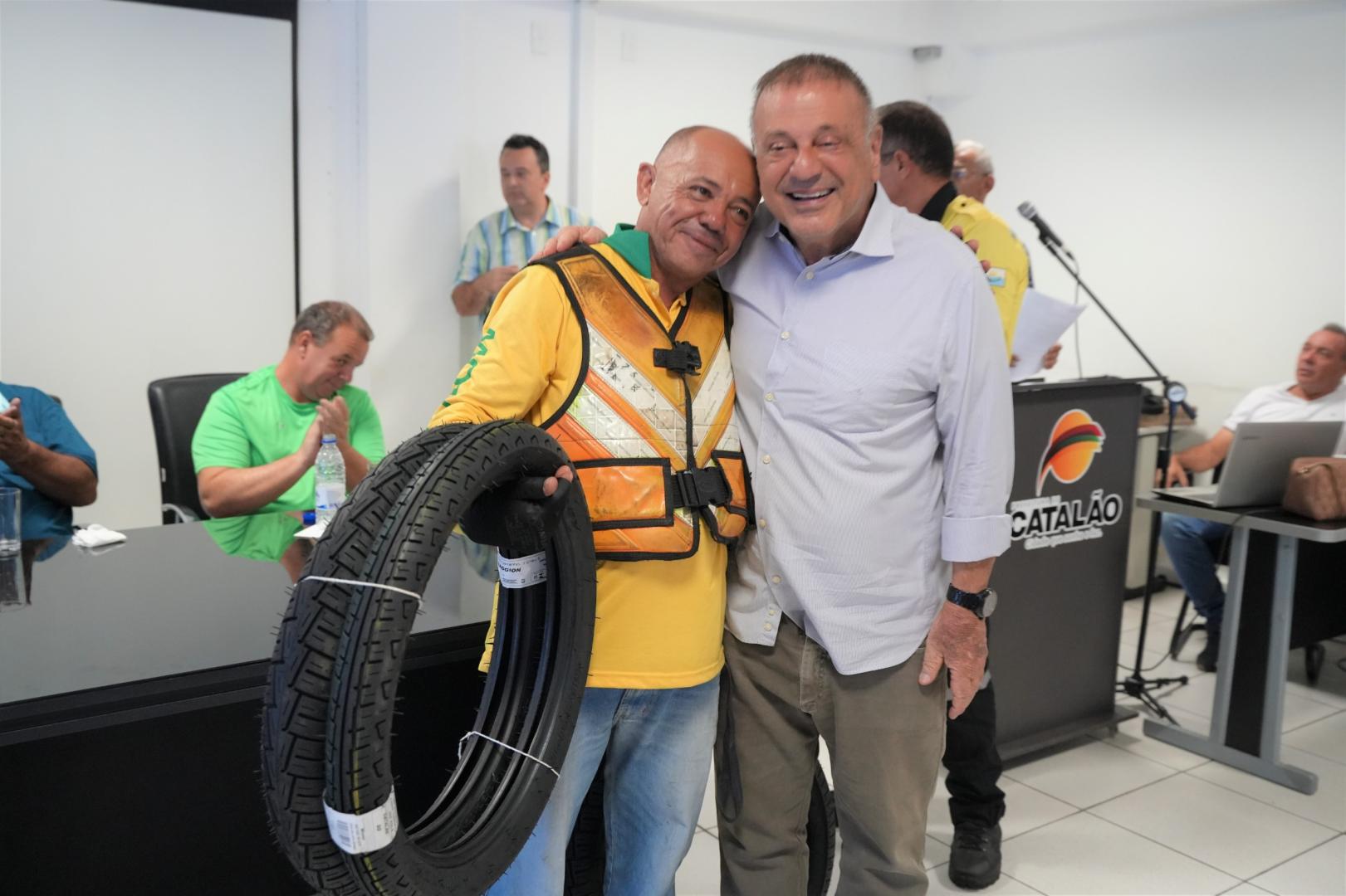 “Se a gente fosse comprar esses dois pneus, ia custar uns R$ 350,00. Então, é um incentivo da Prefeitura pra nós que enfrentamos muitos desafios nessa nossa profissão de transportar pessoas com segurança sobre duas rodas”, disse Vander Geraldo dos Santos, presidente da Cooperativa de Mototaxistas de Catalão.