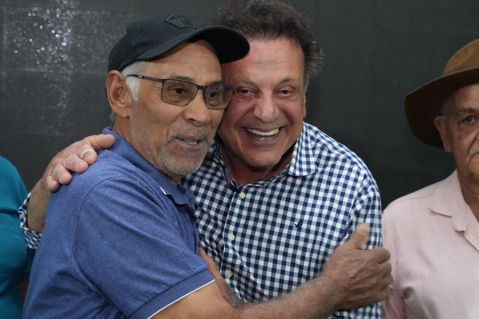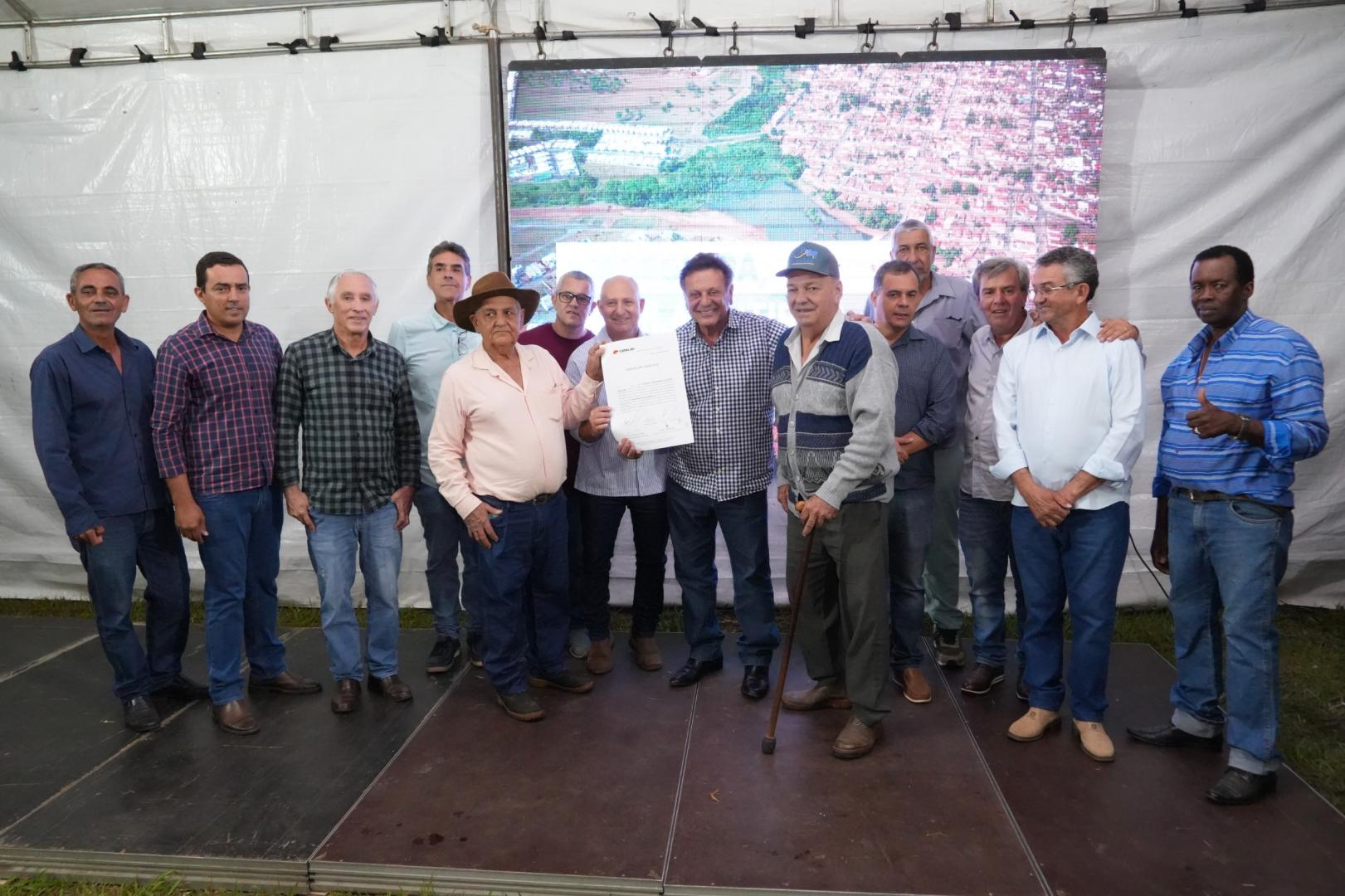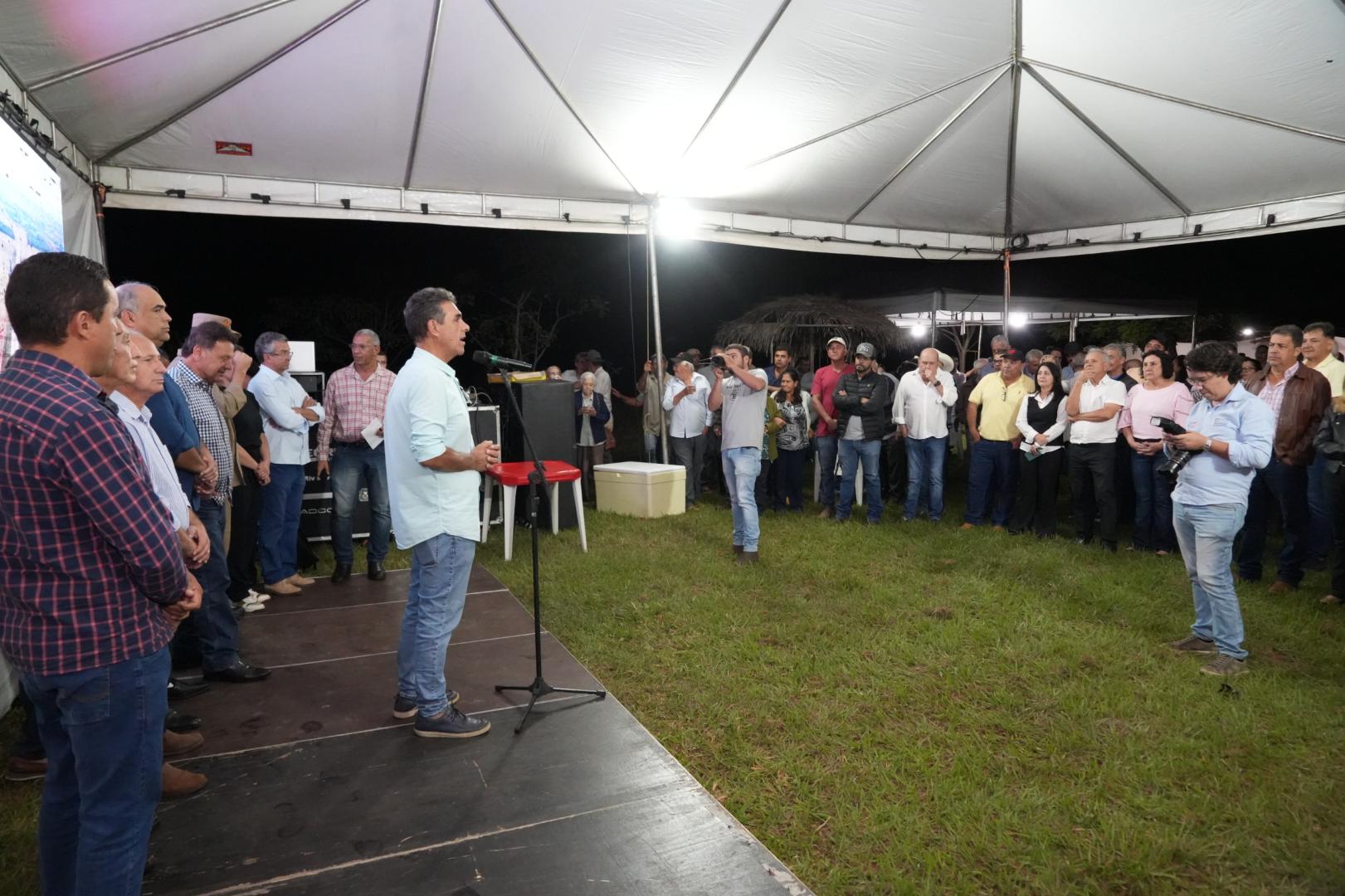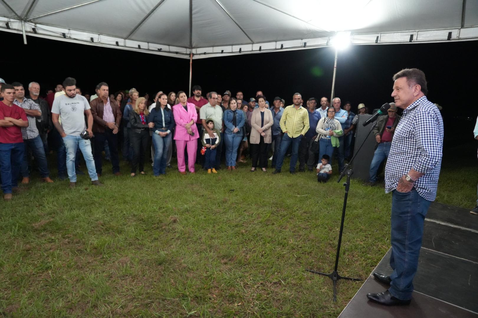 Fazendeiros, líderes comunitários, vereadores e secretários municipais estiveram na solenidade de lançamento de asfalto na comunidade rural Coqueiros, no começo da noite desta quinta-feira (13), no campo de futebol do povoado.